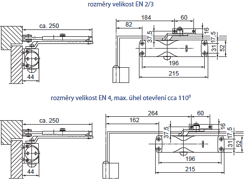 • nastavitelná síla zavírání vel. 2-3 dle EN 1154